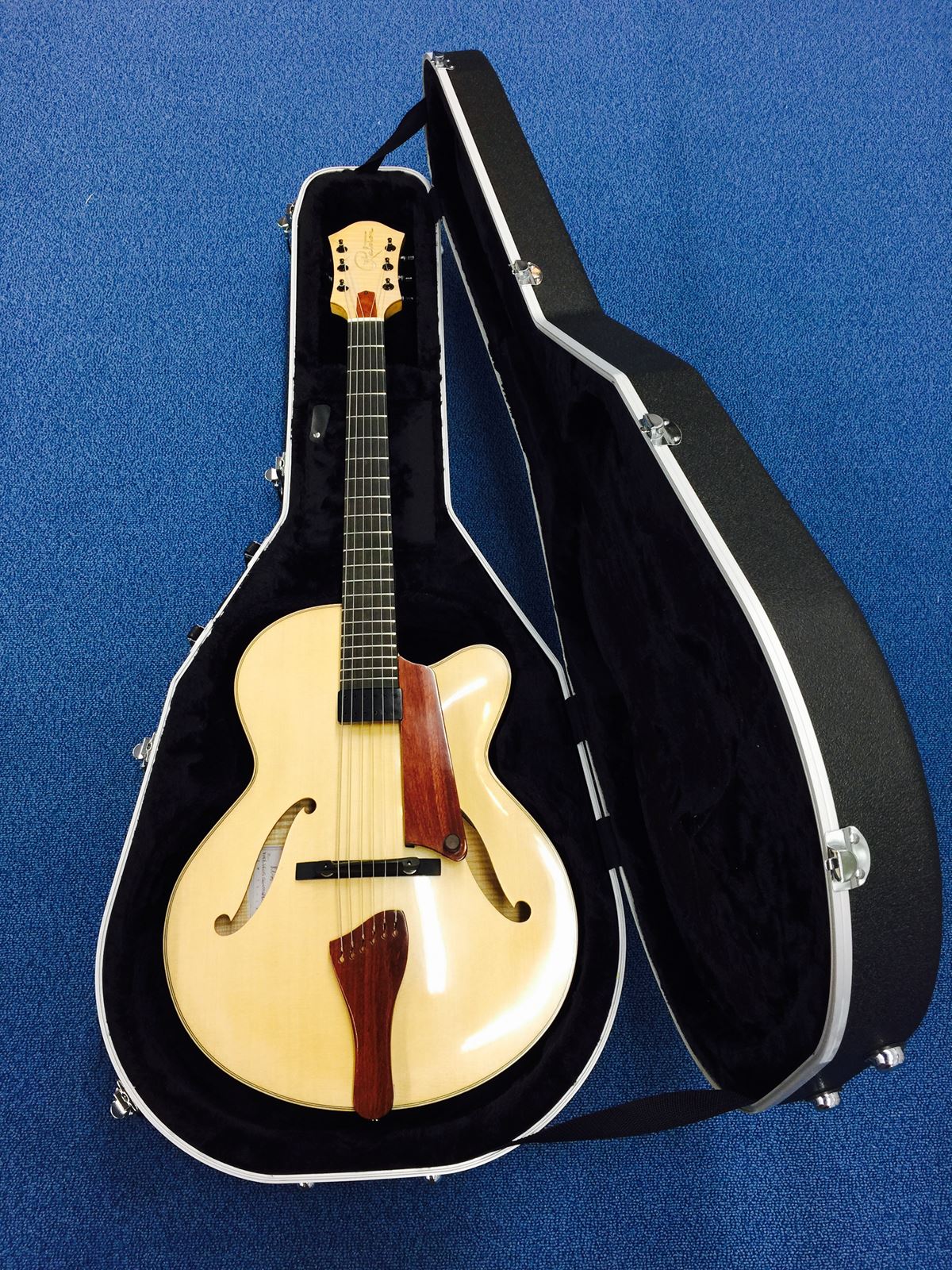 2025年10/1値上げしました!2015年製。店頭デモ品。現品処分特価!美品です。リチャード・ラルストン・・・ニュージーランド・オークランド在住の新進気鋭のアーチトップ・ギタービルダー。父はバイオリン製作者でその伝統と、独自開発の製法、ドイツより直輸入した高品質の木材を使用して見事なギターを(2020年頃まで)製作していましたが、現在は閉業しています。