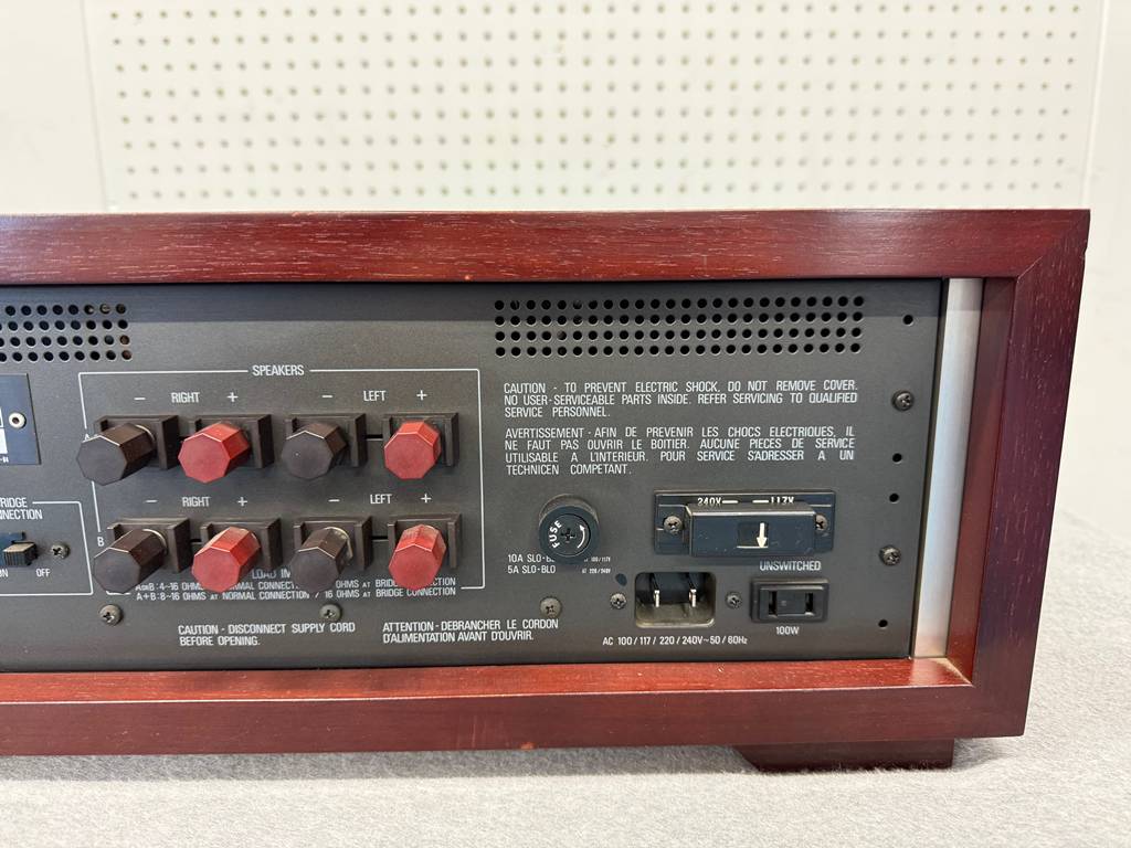 ワンオーナー程度良好美品。ウッドケース付き!ウッドケース後面の脚部一箇所に突板剥がれが有ります。その他は年代の割りには大変綺麗な外観です。非喫煙環境で使用、タバコ臭、ヤニ汚れ等も有りません。2026年1月、外観、端子類清掃、動作チェック済み(良好)。※元箱は有りません。 |