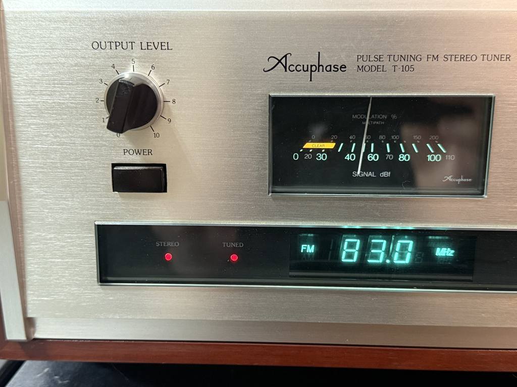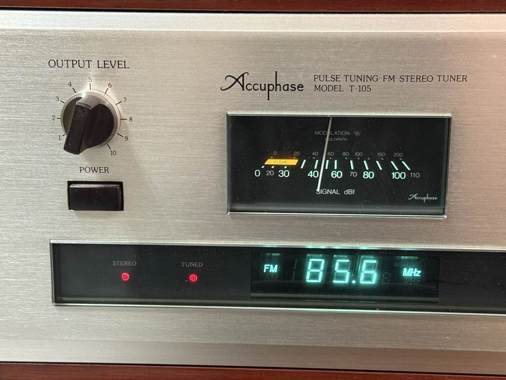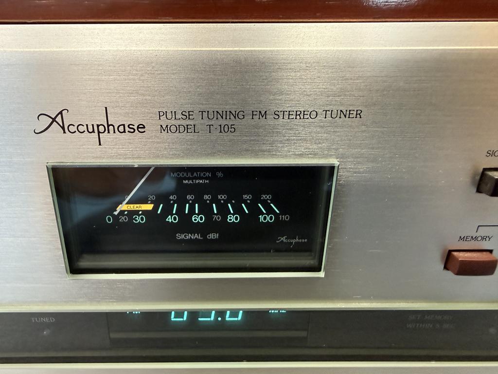 マイクロプロセッサー技術を駆使したクォーツロック・シンセサイザーFMチューナー■バリコン方式と同じフィーリングの手動式選局も可能とするためT-104で開発されたパルス・チューニング方式を搭載■電波の弱いステレオ局のノイズを低減するノイズ・フィルター、局間ノイズを取り去るミュージックスイッチ、出力レベルコントロールを搭載■受信周波数:76.1MHz~89.9MHz■当時の定価:¥136,000(ウッドキャビネット含む)■取り扱い説明書PDF→ t-105_manual_j.pdf